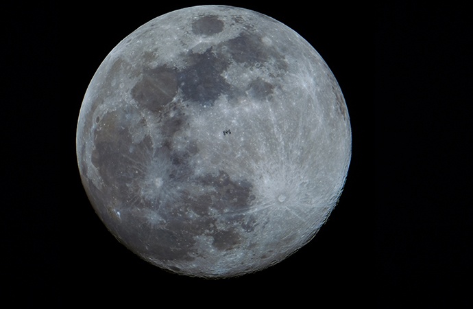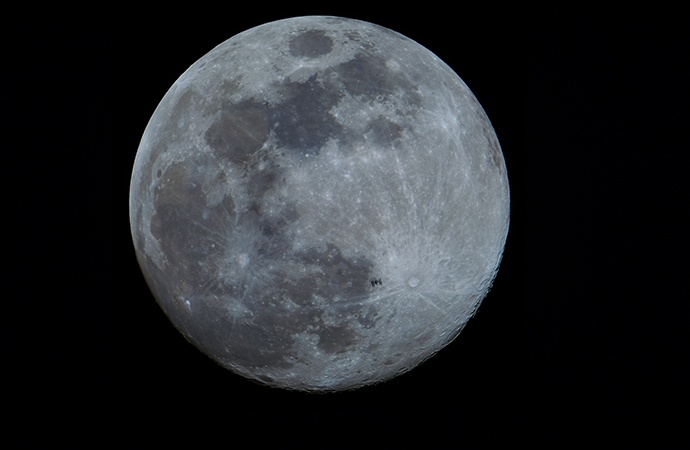 Saatte 28.000 km hızla Dünya etrafında dönen istasyon, 24 Ocak tarihinde dolunay ile kesişme noktası olan Konya'nın Cihanbeyli ilçesinden fotoğraflandı.