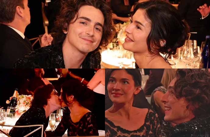 2024 Altın Küre törenine sevgilisi Kylie Jenner ile gelen Timothee Chalamet geceye geç kaldı. Kylie pullu ve dantelli siyah sırt dekolteli elbisesi ve ışıltılı makyajıyla inanılmaz görünürken Timothee de siyah payetli takım elbisesiyle ona eşlik etti.