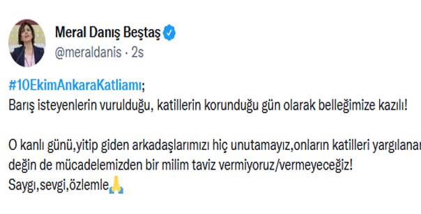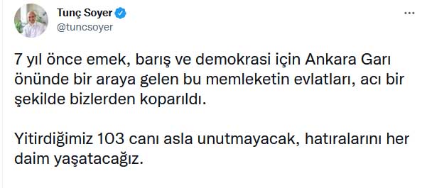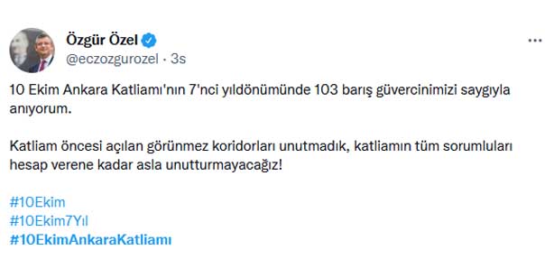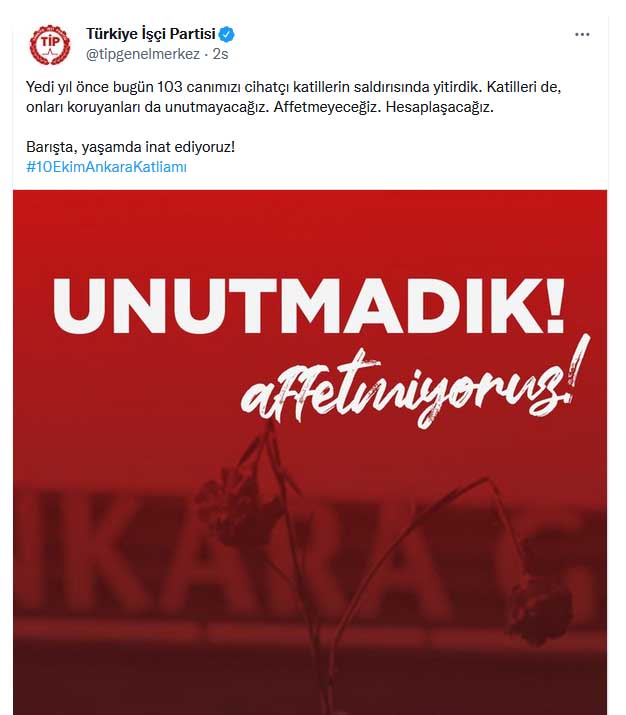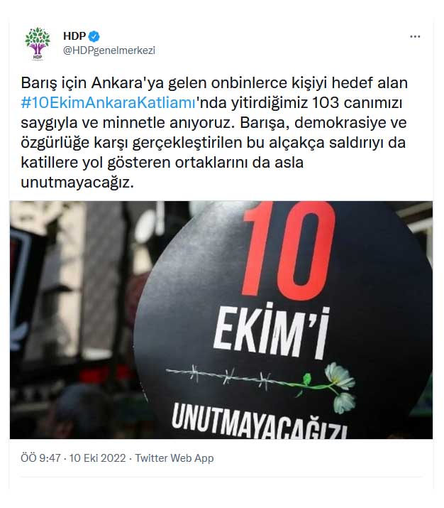 10 Ekim Ankara Gar katliamının 7. yıl dönümünde siyasi partiler anma mesajı yayınladı.