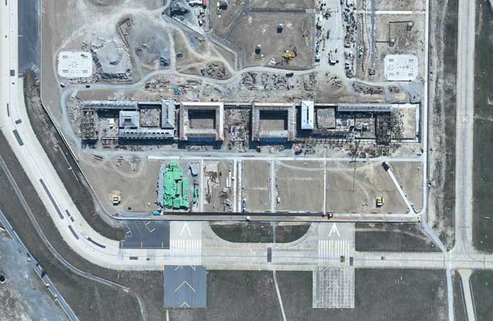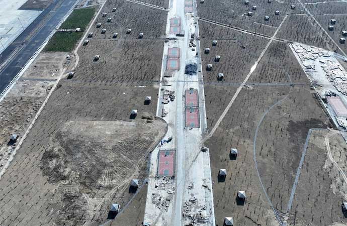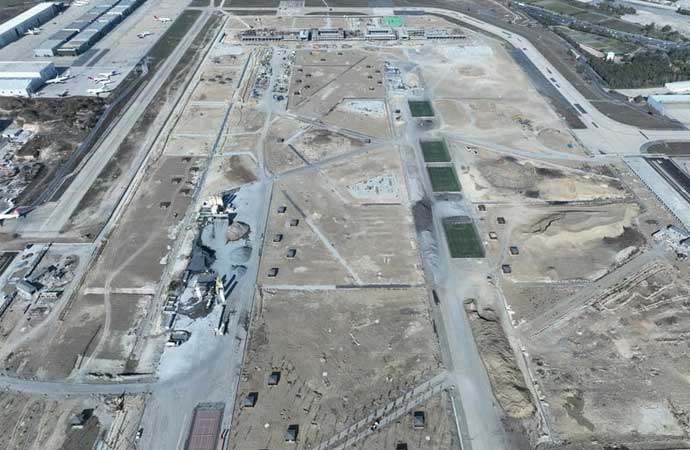 Airport’un haberine göre uçakların iniş kalkış yaptığı pistlerin üzerine beton dökülen futbol, basketbol ve oyun alanları inşa ediliyor.