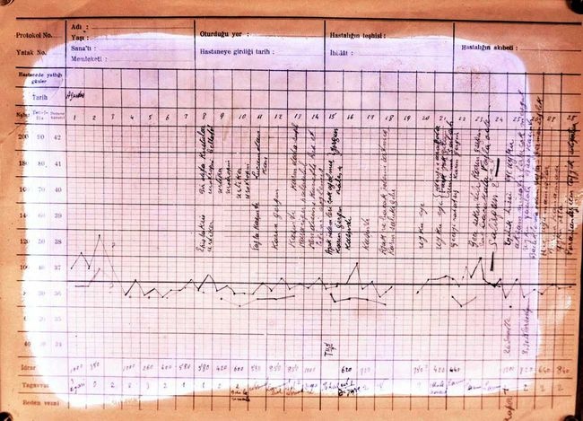 Son günün kayıtları... Saat 8.30’da 500 cc serum verildikten sonra 9.05 sütununda “Vefat etmişlerdir” deniyor.