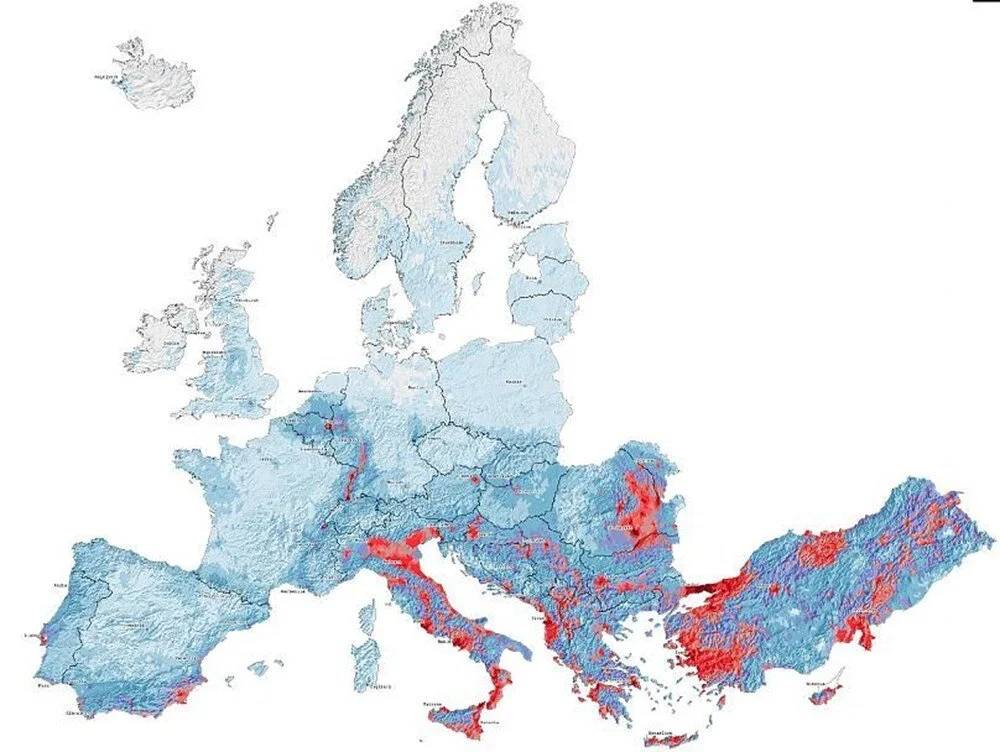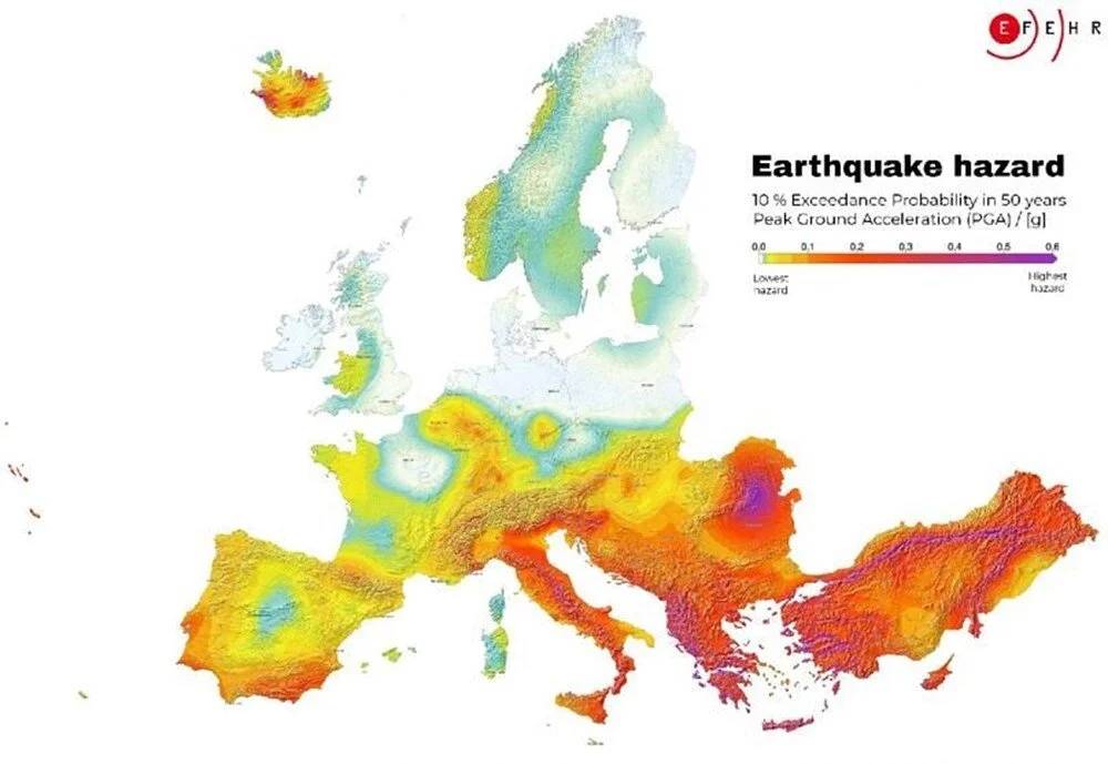 Yayımlanan haritada, Türkiye, Yunanistan, Arnavutluk, İtalya ve Romanya'nın Avrupa'da en yüksek deprem tehlikesine sahip ülkeler olduğu görülürken, söz konusu ülkeleri Balkan ülkelerinin takip ettiği aktarıldı.