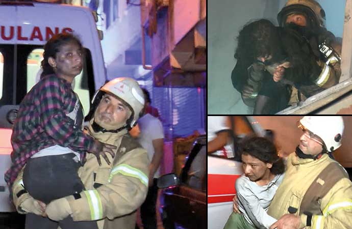 İtfaiye ekipleri merdiven yardımıyla ulaştıkları binanın en üst katındaki dairenin odasında uyuyan çocukları tek tek kurtardı. Bu sırada balkonda bekleyen aile sinir krizleri geçirdi. İtfaiye ekipleri kurtardığı çocukları tek tek kucağında ambulanslara kadar taşıdı. İtfaiye ekiplerinin kurtardığı aynı aileden 5'i çocuk 11 kişiye sağlık ekipleri ilk müdahaleleri yaparak çevre hastanelere kaldırdı. Hastaneye kaldırılan çocuklardan birinin durumunun ağır olduğu öğrenildi. İtfaiye ekipleri yangını tamamen söndürerek duman tahliyesi yaptı.