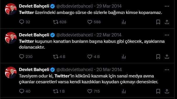 MHP Genel Başkanı Devlet Bahçeli Sabah gazetesine verdiği röportajda sosyal medyayı hedef alarak Bana kalsa yarım saatin içinde sosyal medyanın hepsini kapatırım” dedi.