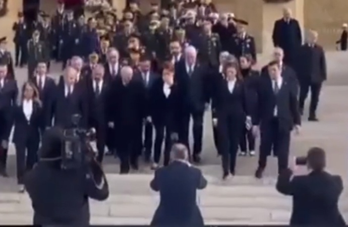 İYİ Parti lideri Meral Akşener ile MHP lideri Devlet Bahçeli, Anıtkabir’de Atatürk’ü anma töreninde bir araya geldi. Akşener ve Bahçeli’nin yana yana sohbet ederek yürümesi sosyal medyada tepki çekti.