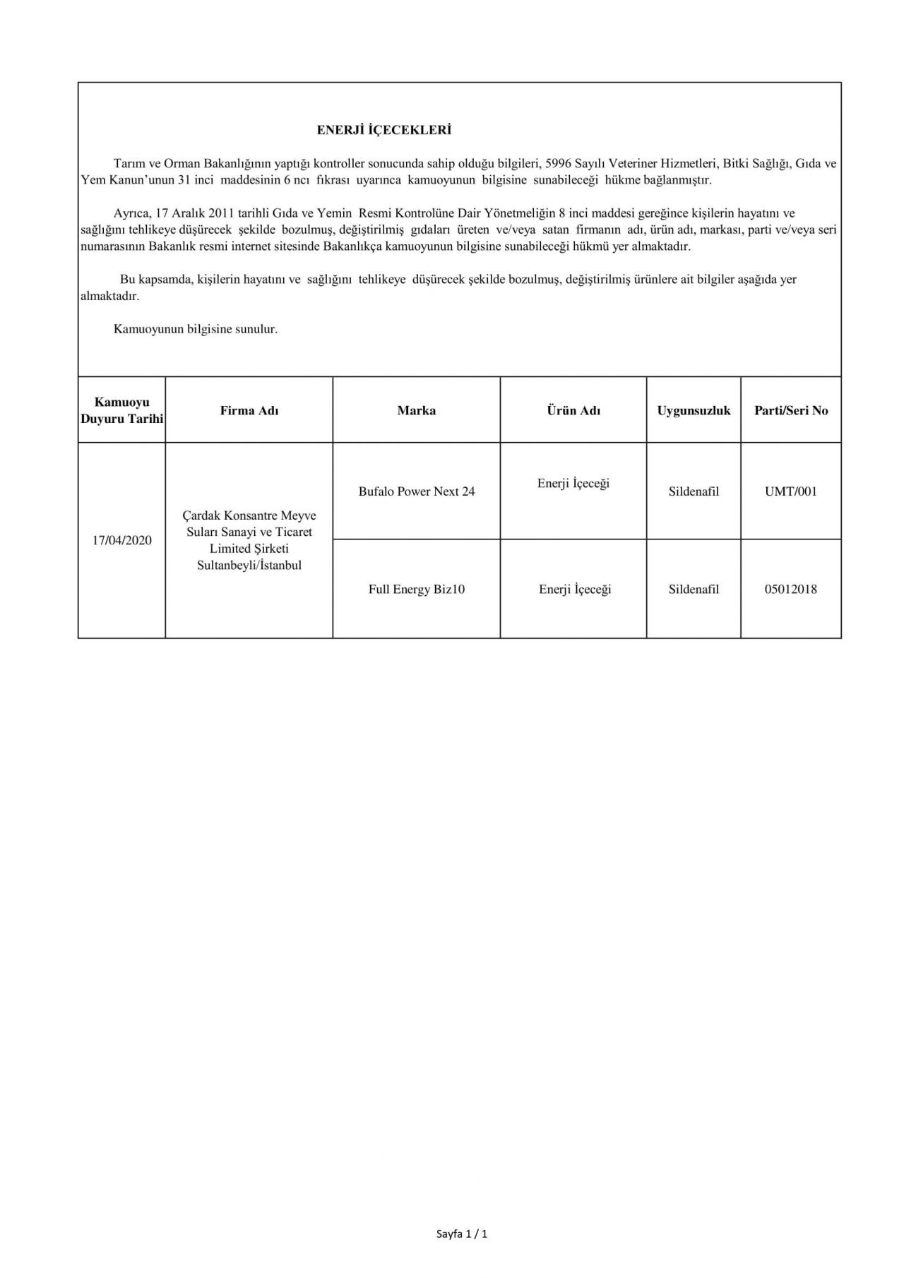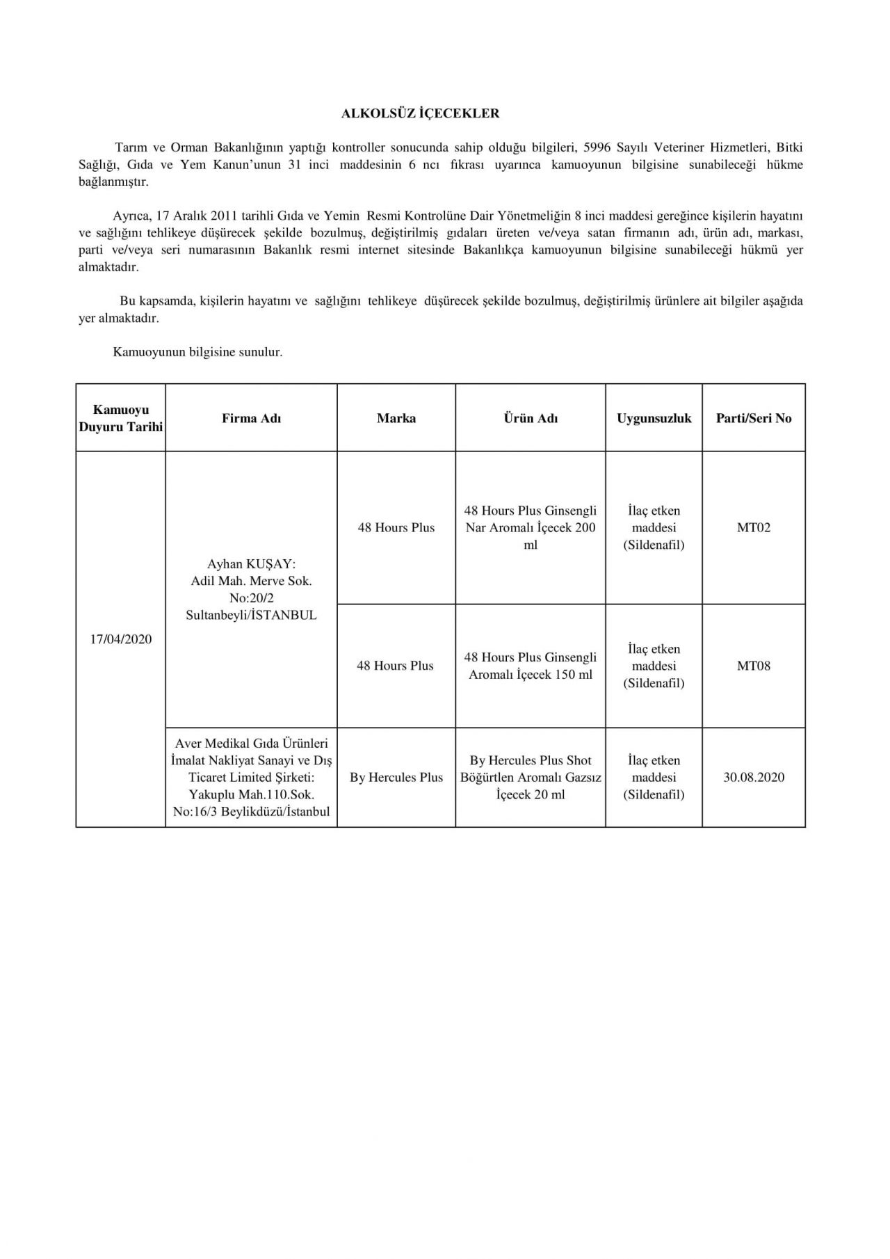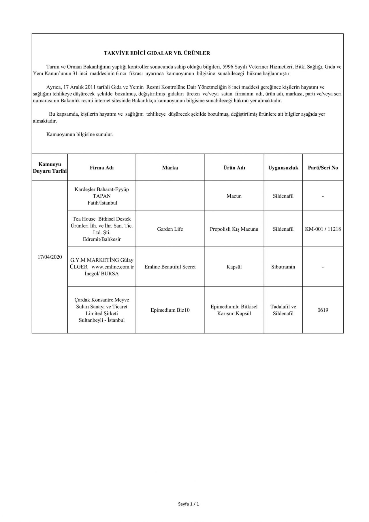 Bakanlığın internet sitesinde yer alan duyuruda, gıda ve gıdayla temas eden madde ve malzemelerin üretim, işleme ve dağıtımının tüm aşamalarında resmi kontrol faaliyetlerinin büyük titizlikle yürütüldüğü ifade edildi.