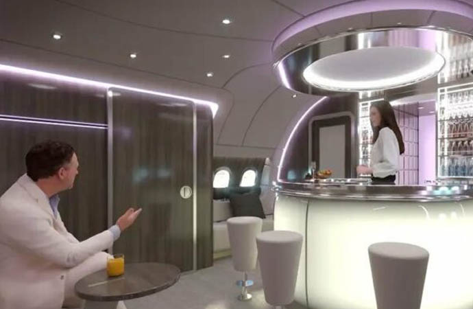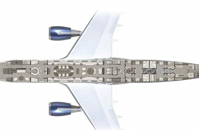 Lufthansa Technik’in yayınladığı çizimlerde, uçağın arka tarafında çalışmak için mükemmel, geniş bir pencereye sahip sessiz oturma alanları ve mutfak bulunuyor. Konsept genel olarak 12 VIP yolcu için tasarlansa da bu sayının 47’ye kadar çıkabileceği bildirildi.