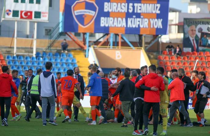 İskenderunspor Üst Yöneticisi (CEO) Jan Olde Riekerink de sahaya girerek oyuncularını soyunma odasına gönderdi.