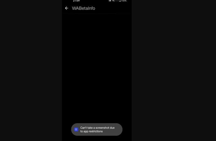 Ekran görüntüsü almaya çalıştığınızda, ekranın alt kısmında "uygulama kısıtlamaları nedeniyle" ekran görüntüsü alınamadığını belirten bir bildirim çıkıyor.