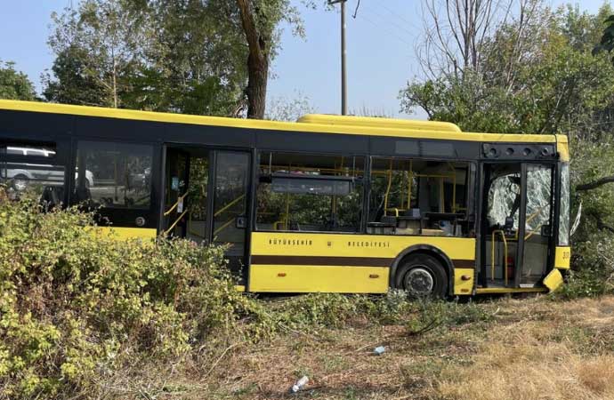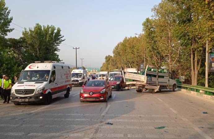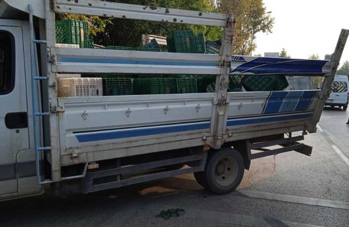 O sırada arkadan gelen ve sürücüsünün ismi öğrenilemeyen belediye otobüsü, kamyonete çarptıktan sonra yol kenarındaki bahçeye savruldu.