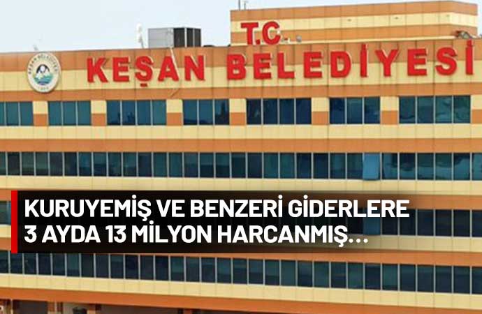 Yerel seçimde AKP’den CHP’ye geçen Keşan Belediyesi’nin borçları belediye binasına asıldı. Bir önceki dönemin borçları dudak uçuklatırken, kuruyemiş ve benzeri giderlere üç ayda 13 milyon lira ödeme yapıldığı ortaya çıktı.