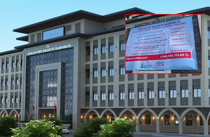 Yerel seçimlerde CHP’nin kazandığı ve 15 sene AKP’nin yönettiği Sancaktepe Belediyesi’nin borç durumu belediye binasına asıldı. Belediyenin yaklaşık 2 milyar TL borcu olduğu ortaya çıktı.