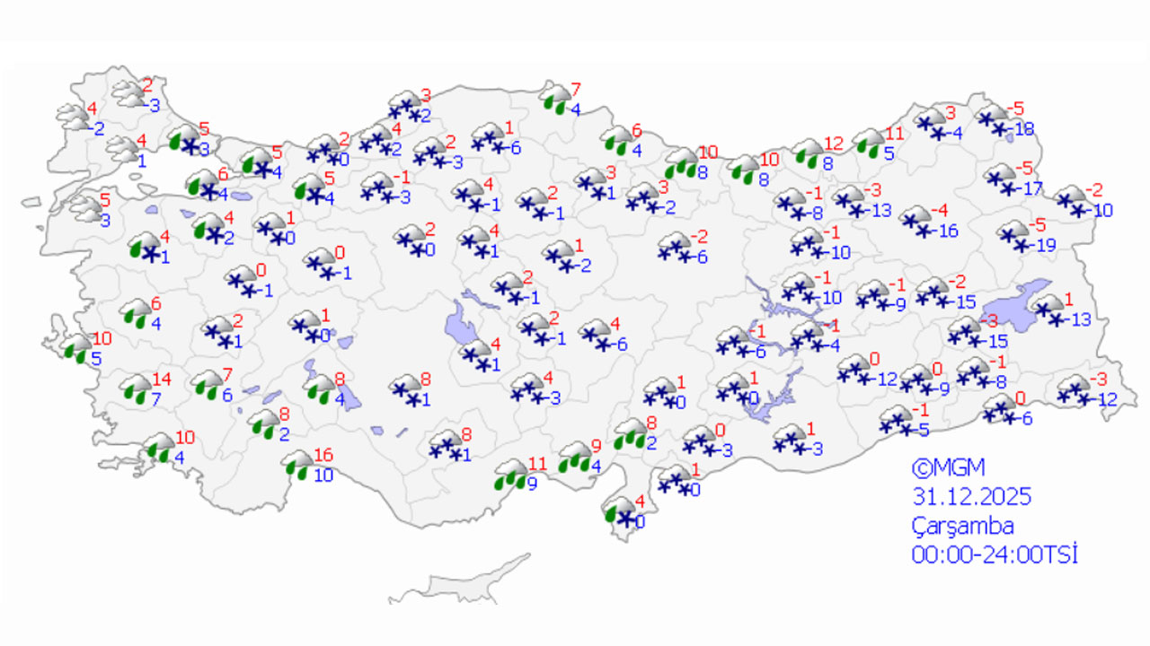 Yeni yıl öncesinde beyaz örtü beklentisine giren İstanbul'daki karseverleri ise üzen haber geldi. Megakentte, kar yağışının etkili olması beklenmiyor. Kentte çarşamba ve perşembe günleri karla karışık yağmur bekleniyor.