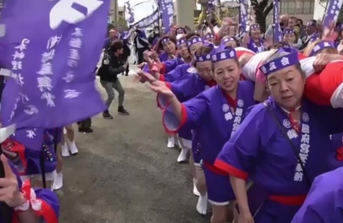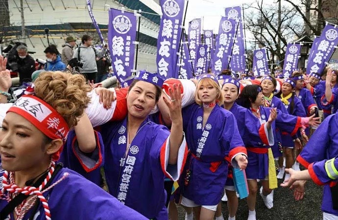 Japonya'daki bir tapınakta düzenlenen ve "çıplak festival" (hadaka matsuri) olarak adlandırılan etkinliğe bin 250 yıllık tarihinde ilk kez kadınlar da katıldı.