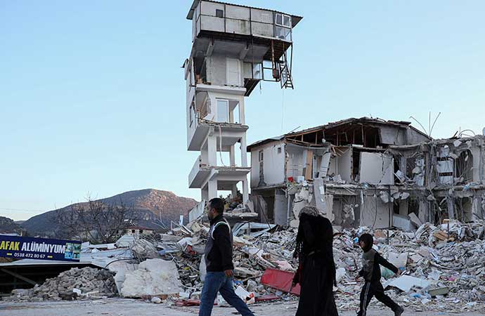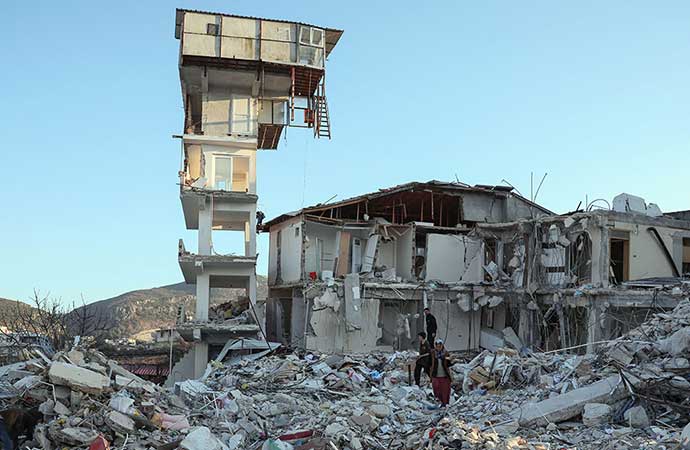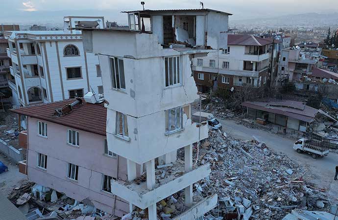 Hatay'ın merkez Antakya ilçesinde, Kahramanmaraş merkezli depremlerde bir bina çökmesine rağmen yanında bulunan ek yapısı yıkılmadı.