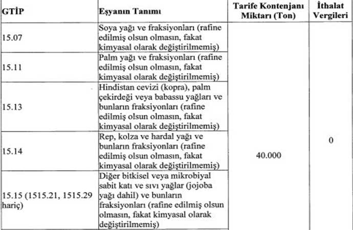 Sanayi ürünleriyle ilgili kararnamede ise, “Ekli ‘Birleşik Arap Emirlikleri Menşeli Bazı Sanayi Ürünlerinin İthalatında Tarife Kontenjanı Uygulaması Hakkında Karar’ın yürürlüğe konulmasına; 1567 sayılı Kanunun 1 inci, 474 sayılı Kanunun 2 nci, 3283 sayılı Kanunun 2 nci, 4458 sayılı Kanunun 16 ncı, 22 nci ve 55 inci maddeleri ile 2976 sayılı Kanun ve 7449 sayılı Kanun hükümleri gereğince karar verilmiştir” ifadelerine yer verildi.