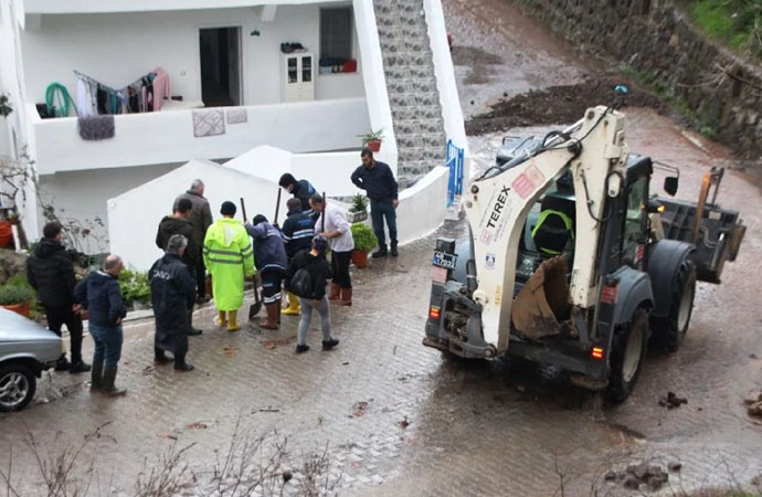 Evlerinin yaklaşık 1 metre su basan vatandaşlar balkon duvarlarını yıkarak suları tahliye etti. Şiddetli yağmur nedeniyle bazı yolların asfaltları ve kaldırım taşları yerinden söküldü. Bodrum-Turgutreis yolu trafiğe kapatıldı.