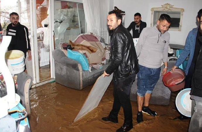 İslamhaneleri Mahallesinde tepelerden gelen yağmur onlarca evi su altında bıraktı. Bir hamile kadın evinin su basması nedeniyle sancısı tutarak hastaneye kaldırıldı.