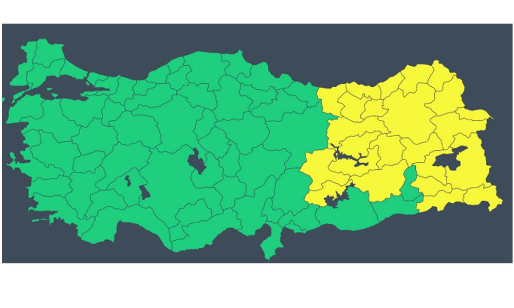 KUVVETLİ YAĞIŞ UYARISI: Yağışların, Doğu Anadolu’nun güney ve batısı ile Hatay, Osmaniye, Kahramanmaraş, Trabzon, Rize, Artvin, Adıyaman, Diyarbakır, Siirt çevrelerinde kuvvetli olması beklendiğinden meydana gelebilecek ulaşımda aksamalar, su baskını gibi olumsuzluklara karşı dikkatli ve tedbirli olunmalıdır.