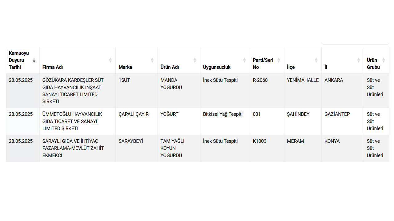 Söz konusu listeye 28 Mayıs Çarşamba günü eklenen yoğurt markaları şaşkınlığa neden oldu.
