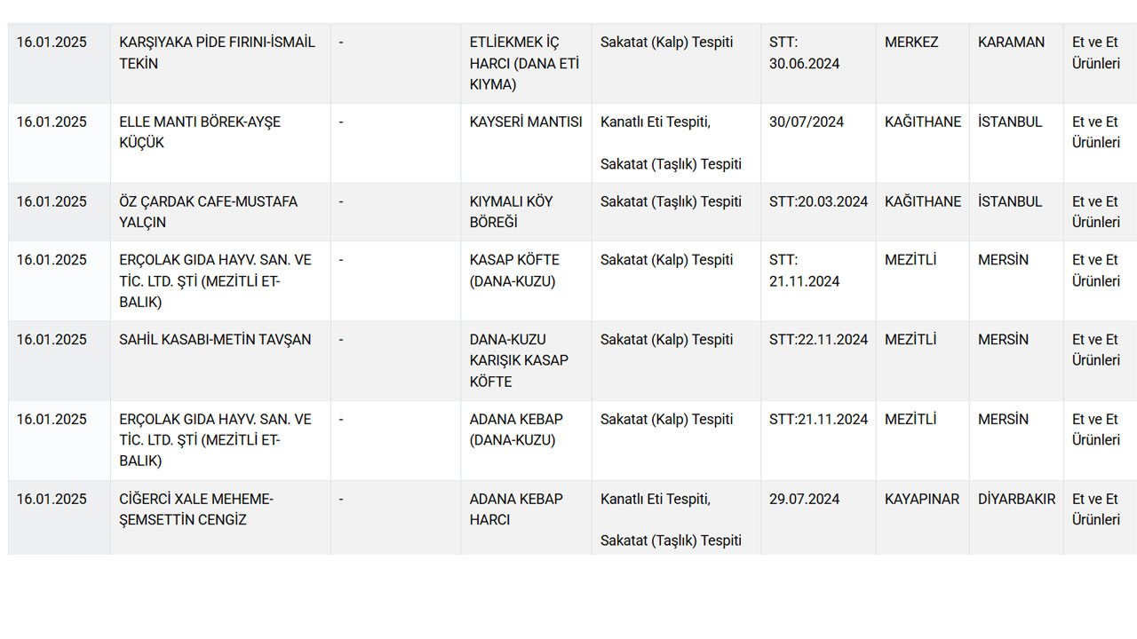 'Taklit veya Tağşiş Yapılan Gıdalar' listesine 16 Ocak Perşembe günü eklenen birçok firmanın ürünlerinde 'sakatat' tespit edildi.