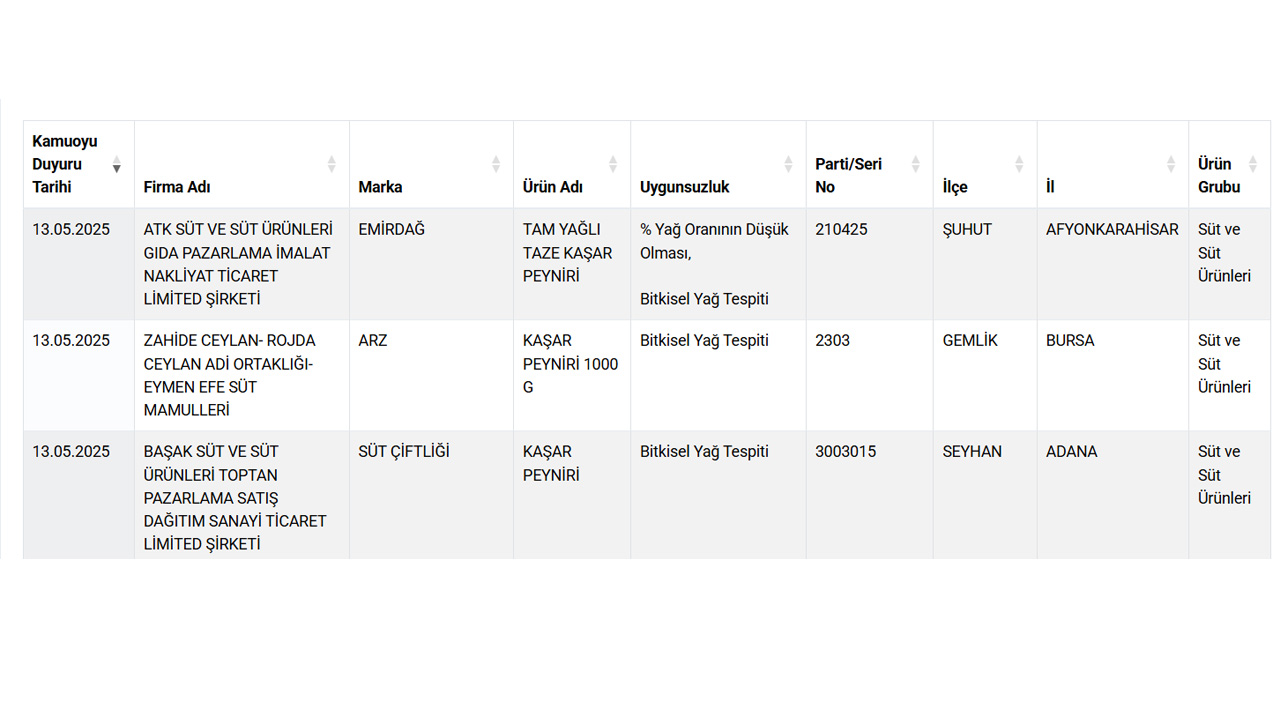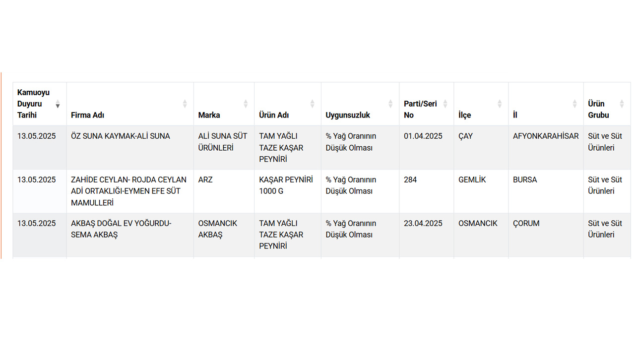 Söz konusu listeye 13 Mayıs’ta eklenen kaşar peynirleri şaşkınlığa neden oldu.