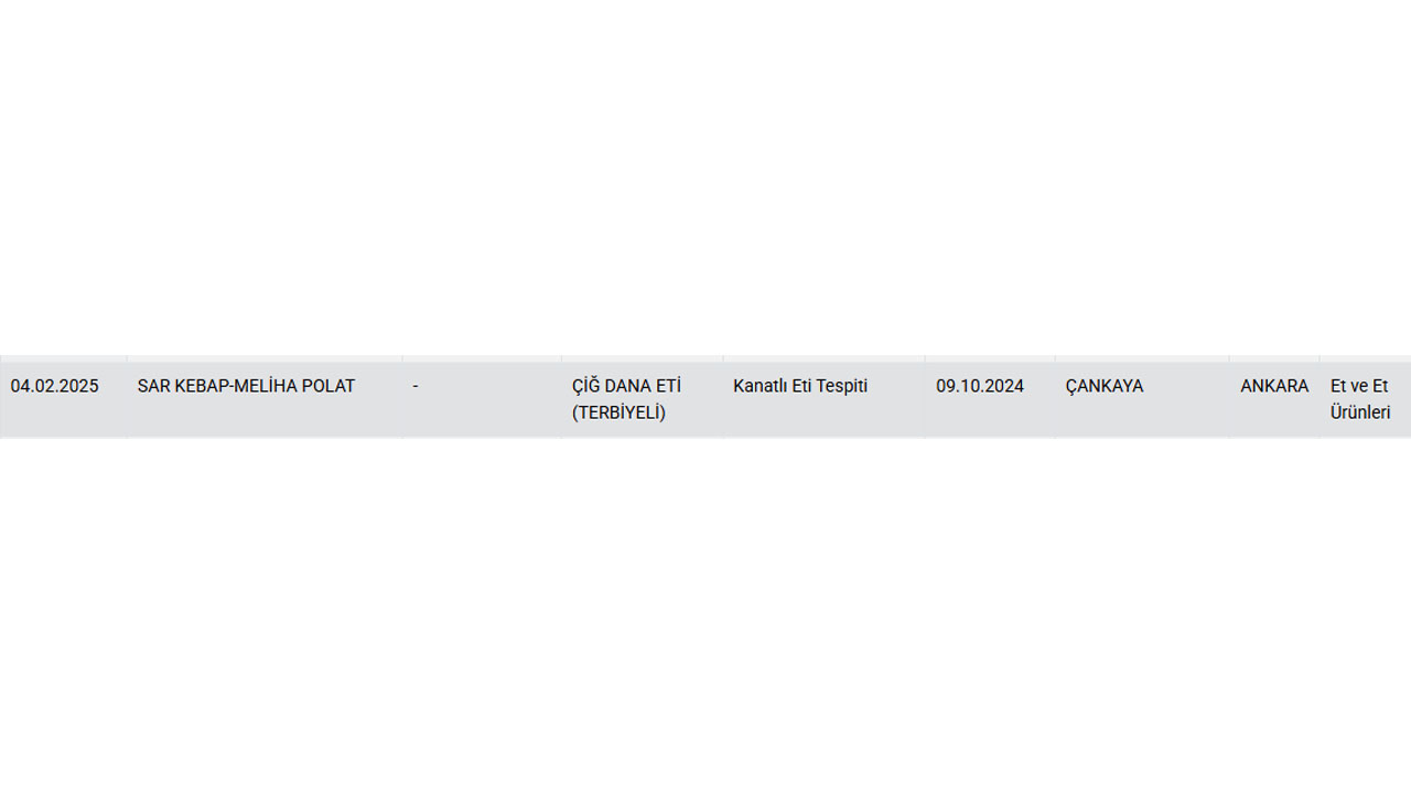 Çiğ dana etinde "Kanatlı Eti" tespit edildi.