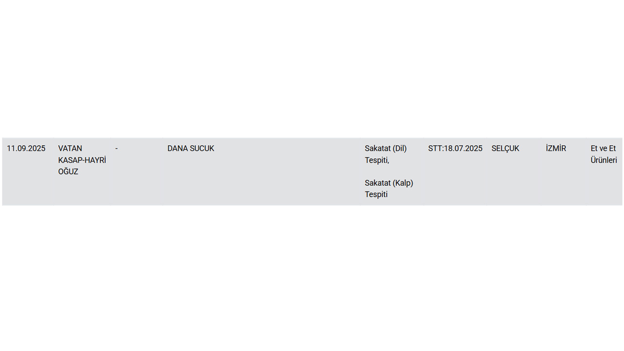 11 Eylül'de listeye eklenen birçok üründe sakatat tespit edildi.