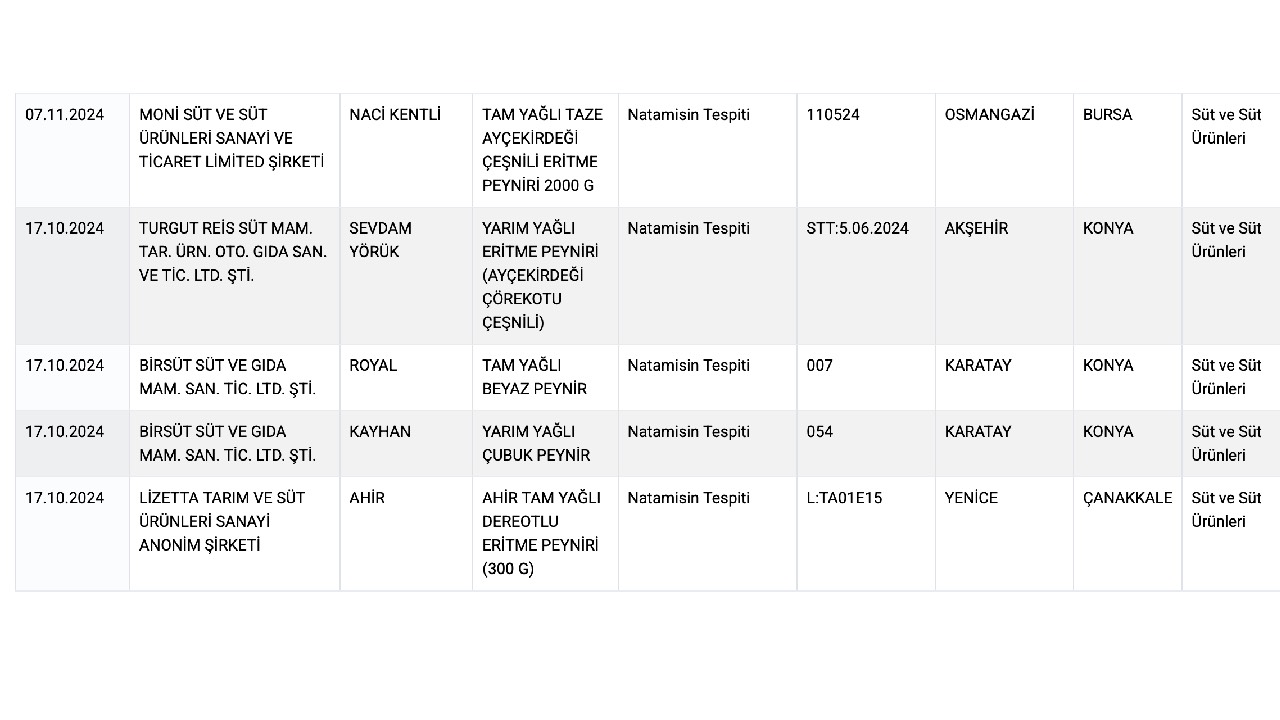 Tarım ve Orman Bakanlığı tarafından açıklanan “Sağlığı Tehlikeye Düşürecek Gıdalar” listesinde yer alan peynir markaları görenleri şoke etti.