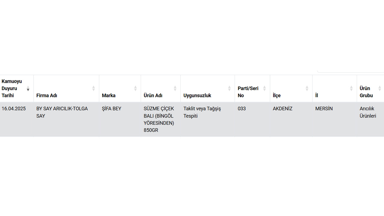 İşte, 'Taklit veya Tağşiş Yapılan Gıdalar' listesine 16 Nisan'da eklenen bal markası...