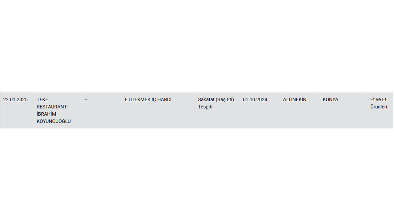 'Taklit veya Tağşiş Yapılan Gıdalar' listesine 22 Ocak'ta eklenen etli ekmek satan bir firma şaşkınlığa neden oldu.