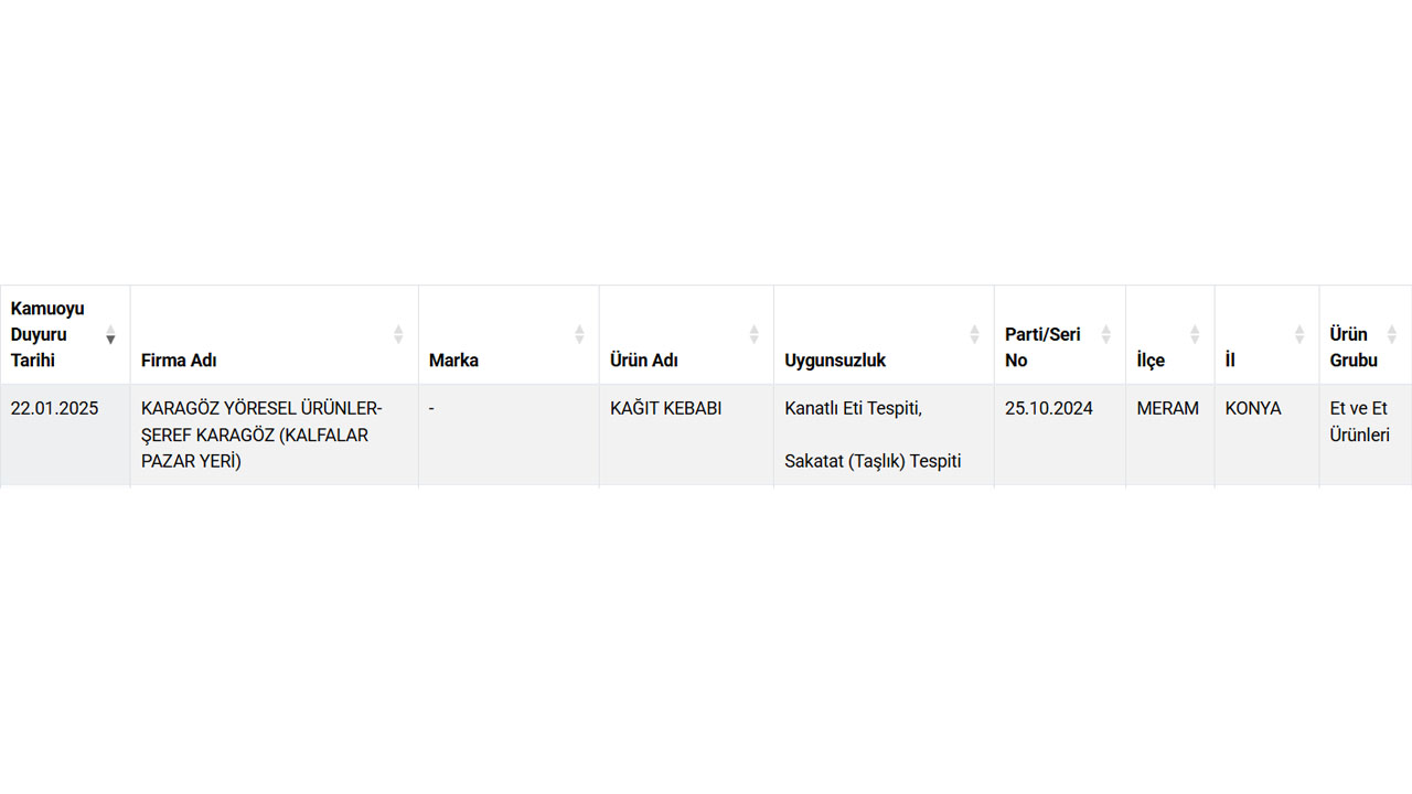 'Taklit veya Tağşiş Yapılan Gıdalar' listesine 22 Ocak'ta eklenen kağıt kebabı satan bir firma şaşkınlığa neden oldu.