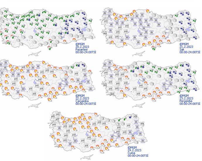 20 Şubat ve 26 Şubat tarihleri arasında, genellikle mevsim normalleri civarında seyreden hava sıcaklıklarının, kuzeybatı kesimlerden başlayarak kuzey, iç ve batı kesimlerde yer yer mevsim normalleri üzerine yükseleceği tahmin ediliyor.