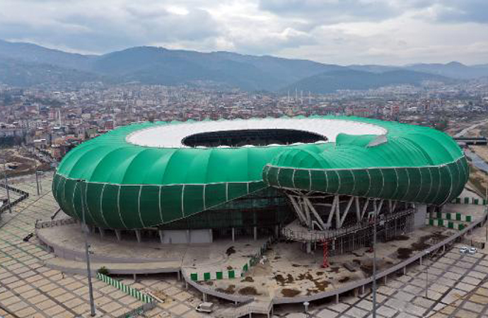 Bursa Büyükşehir Belediyesi tarafından yaptırılan 400 bin metrekare proje alanı ve 190 bin metrekarelik inşaat alanıyla Bursa’nın en büyük anıtsal yapılarından biri olan, takımın simgesiyle özdeş olarak timsah görünümünde inşa edilen stadyumda, timsah kafasını oluşturan bölümün inşaatı yeniden başladı. Bursa kamuoyunda en fazla tartışılan konulardan birinin de stadyumdaki timsah kafası bölümünün ne zaman tamamlanacağı olduğunu belirten Büyükşehir Belediye Başkanı Alinur Aktaş, yeniden başlayan çalışmaları yerinde inceledi. Fen işleri Dairesi Başkanı Feridun Tarım’dan çalışmalar hakkında bilgi alan Başkan Aktaş, işin bitiminin 2020 Aralık ayı olarak öngörüldüğünü ancak çalışmaları daha önce tamamlamayı arzuladıklarını söyledi.