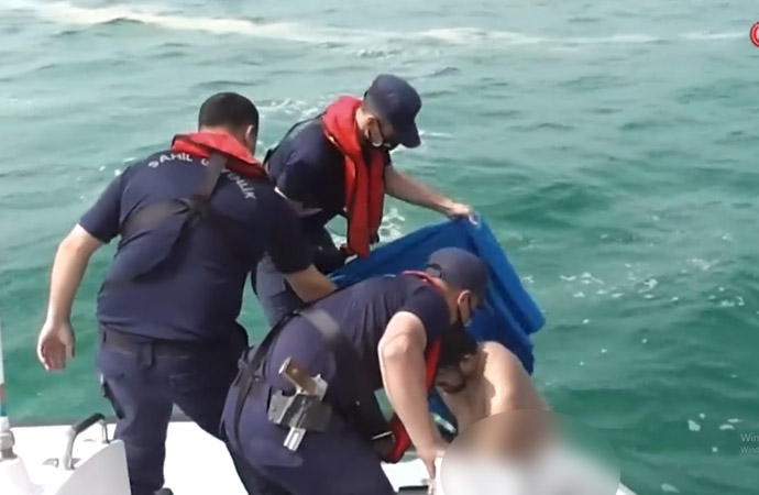 Müsilaj tabakasının ortasında boğulma tehlikesi geçiren K.A. ile kaptanı olmadan seyreden tekneyi gören kıyıdaki vatandaşlar da Alo 158 ihbar hattını arayıp yardım istedi.