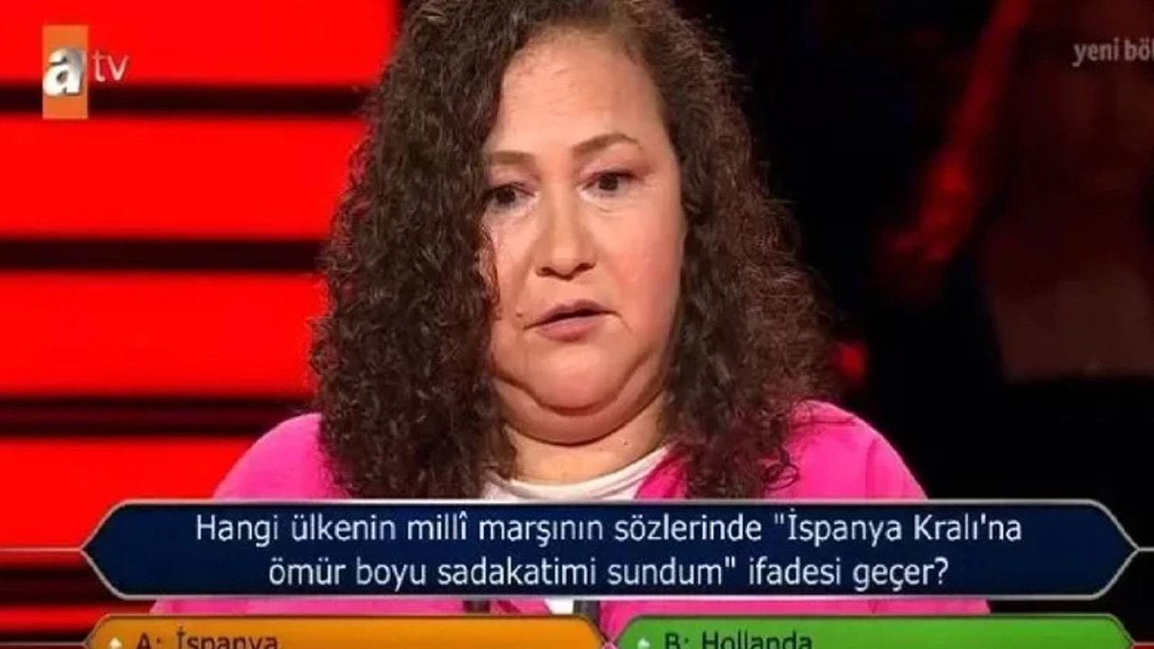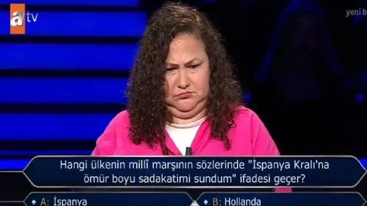 Yarışmacının karşısına, "Hangi ülkenin marşının sözlerinde "İspanya Kralı'na ömür boyu sadakatimi sundum" ifadesi geçer?" sorusu çıktı.