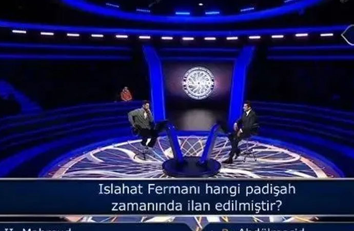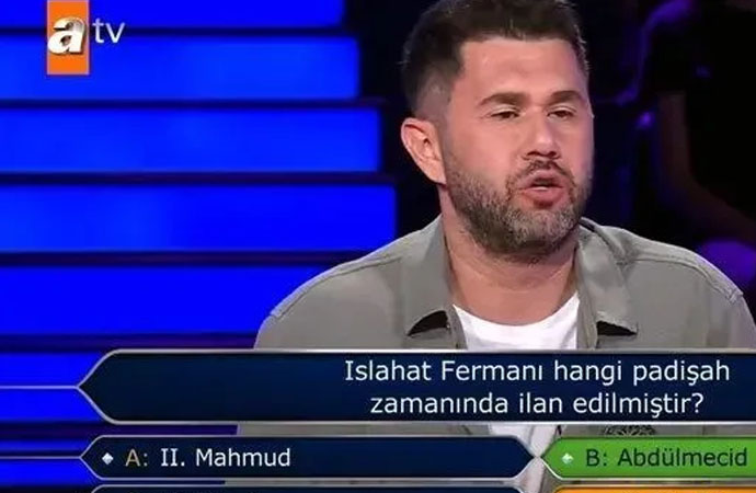 Yarışmacı, cevap verseydi 'D- II. Abdülhamid' cevabını vereceğini söyledi ancak doğru cevap 'B- Abdülmecid' olacaktı.