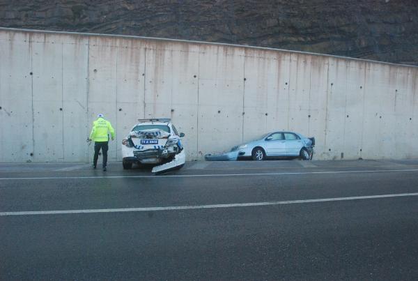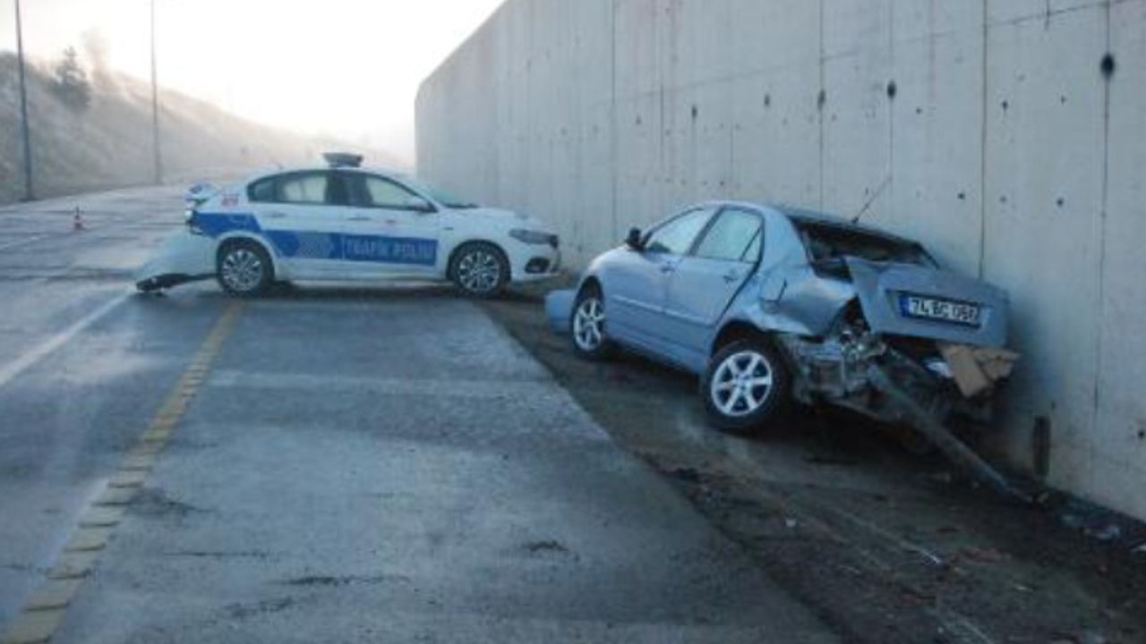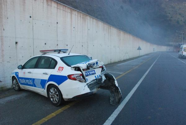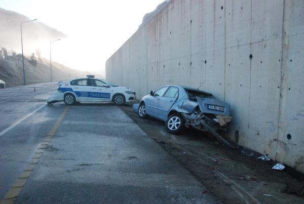 Kazada araçta bulunan trafik polisleri S.Ç. ve K.K., hafif yaralandı