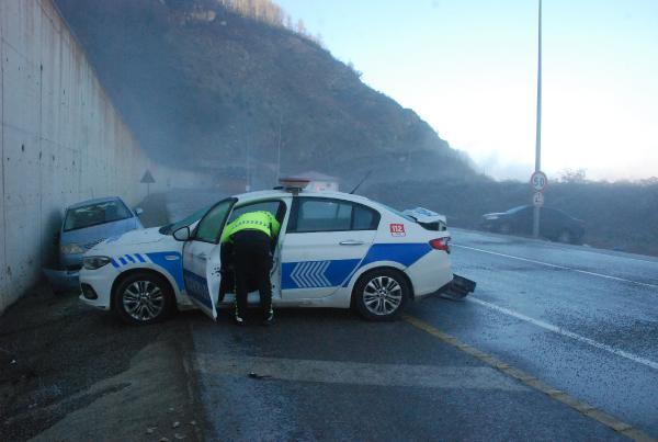 Bu sırada Besim Coşkun yönetimindeki 74 BC 066 plakalı otomobil de kayarak trafik ekibinin aracına arkadan çarptı.