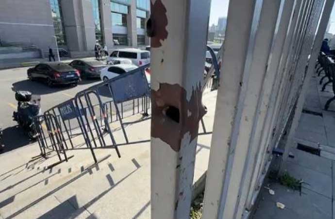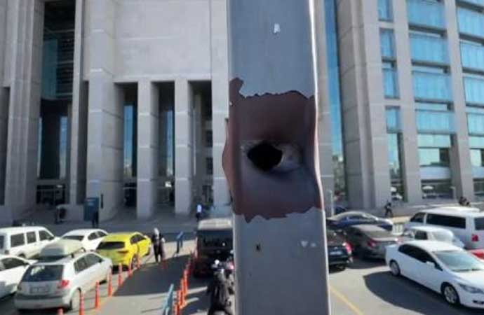 Öte yandan adliyenin C Kapı girişindeki demir kapının iki tarafında da kurşun izlerinin olduğu görüldü.