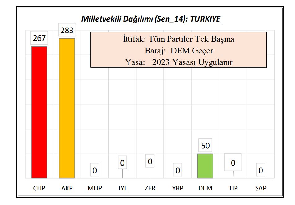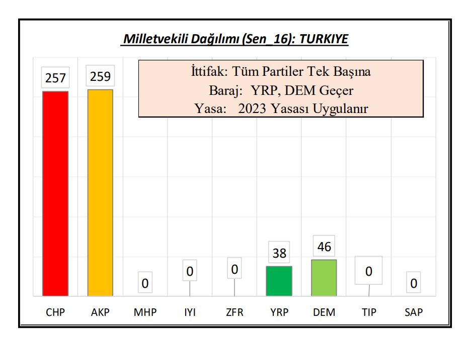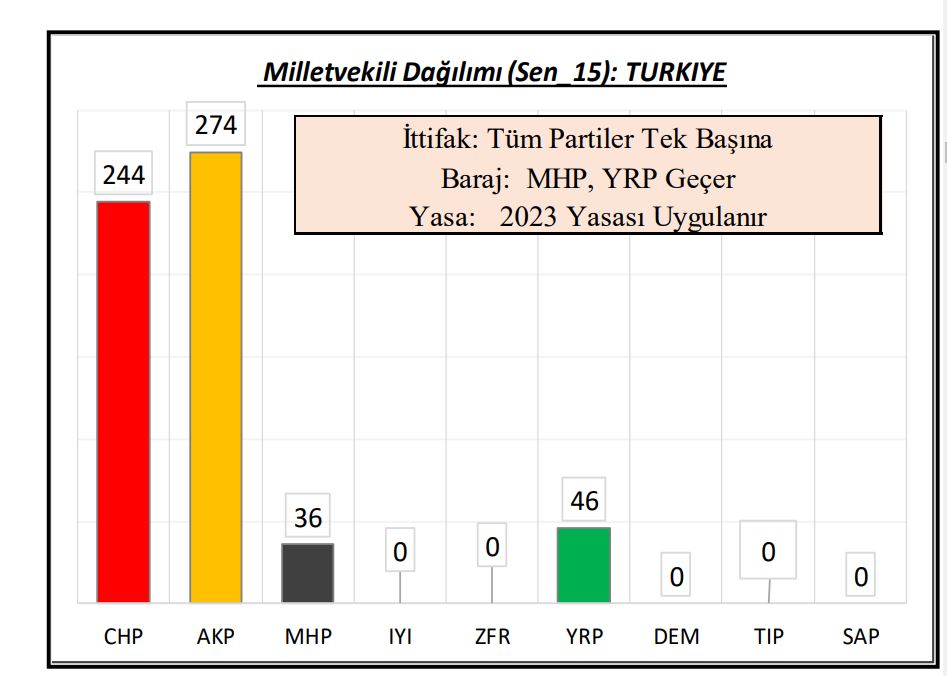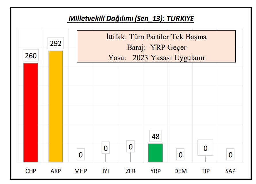 Bu senaryoda CHP:260 AKP:292 YRP:48 milletvekilliği kazanır. Bu Senaryoda Cumhur İttifakı (AKP),