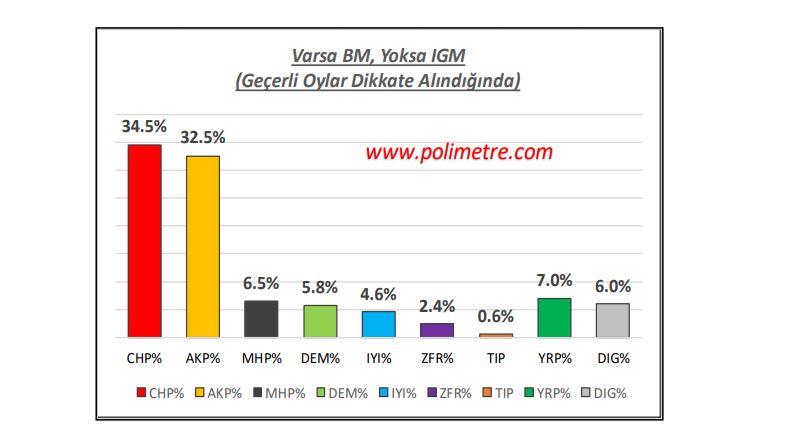 Seçim yasasına göre AKP aldığı yüzde 32.5 oyun karşılığında 235  CHP aldığı yüzde 34.5 oyun karşılığında 231 milletvekilliği kazanıyor. Polimetre'nin araştırmasına göre Bunun nedeni küçük seçim bölgelerinde milletvekili başına düşen seçmen sayısının daha az olmasıdır. Örneğin İzmir 2'inci bölgede 129 bin seçmene 1 milletvekili düşerken, Bayburt’ta 30 bin seçmene 1 milletvekili düşmektedir. Küçük illerin sayısı arttıkça adaletsizlik de artmaktadır. Bu nedenle iktidar tarafının yeni iller