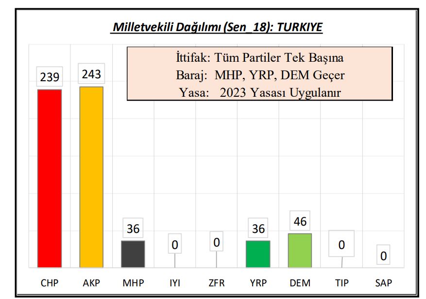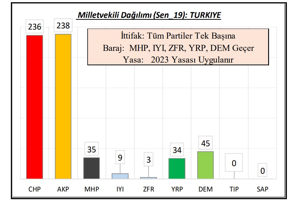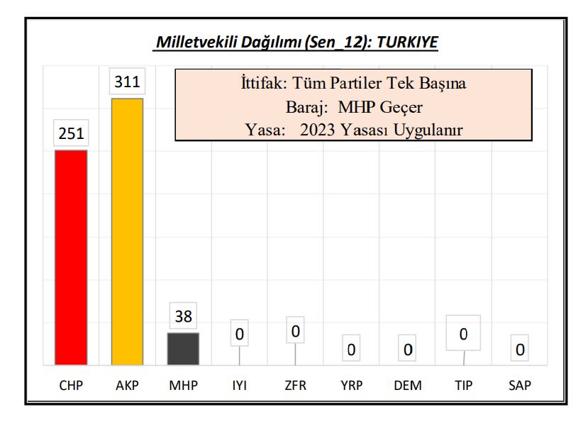 Bu senaryoda CHP:251 AKP:311 MHP:38 milletvekilliği kazanır Bu Senaryoda Cumhur İttifakı CHP’den 98 milletvekili fazla