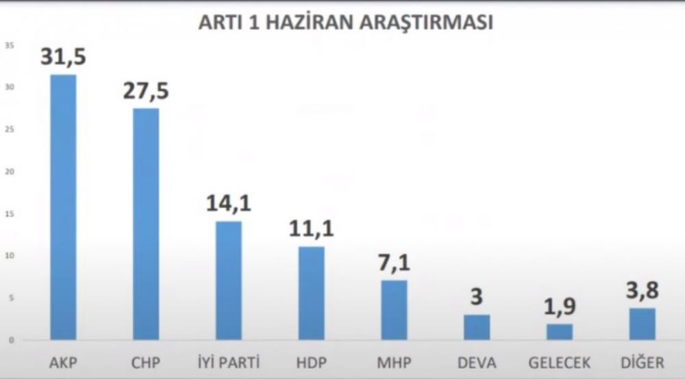 Artıbir araştırmanın kararsızlar dağıtıldıktan sonra, Haziran ayı sonuçları şu şekilde: