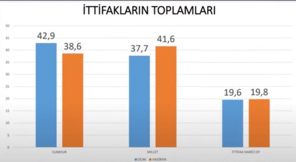 Özkiraz, YouTube üzerinden yaptığı bir yayın ile Artıbir araştırmanın, Ocak-Haziran dönemi anket sonuçlarını karşılaştırdı. Artıbir araştırmanın anket sonuçlarına göre, Millet ittifakı birinci sırada yer alırken, Cumhur İttifakı'nın oylarının geçtiğimiz 6 ayda erimesi dikkat çekti.