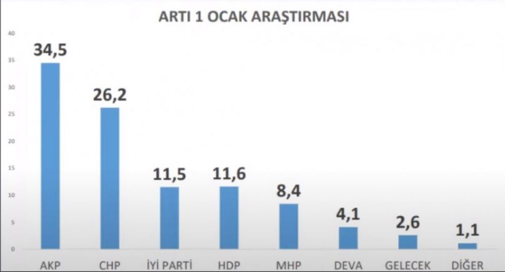 Artıbir araştırmanın kararsızlar dağıtıldıktan sonra, Ocak ayı sonuçları şu şekilde: