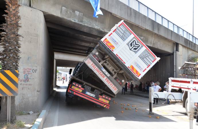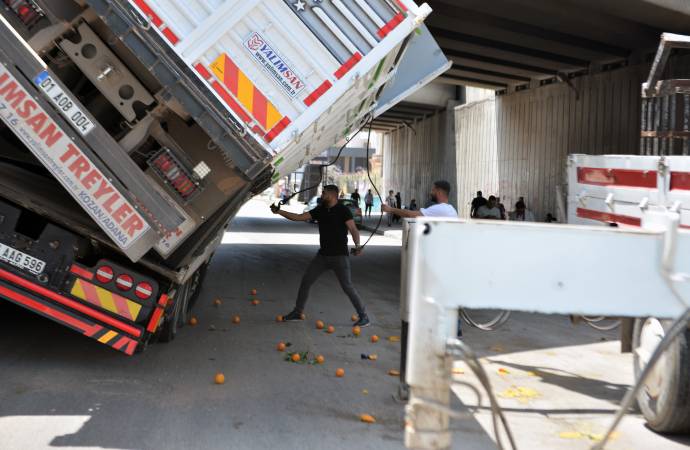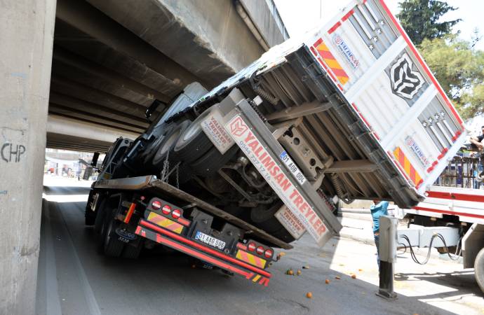 Adana'nın saat 13.00 sıralarında Sarıçam ilçesi Kozan Caddesi'nde Ümit Kalender yönetimindeki 01 AAG 596 plakalı çekicide yüklü 01 AOB 004 plakalı kamyonun kasası, Tarsus- Adana Gaziantep (TAG) Otoyolu köprüsüne çarparak sıkıştı.