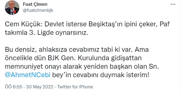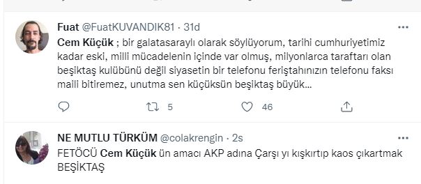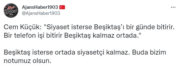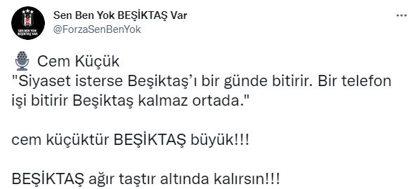 Cem Küçük 'siyaset isterse Beşiktaş'ı bir günde bitirir' dedi, tepkiler ardı ardına geldi