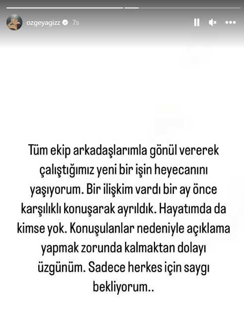 ATV ekranlarının yeni dizisi Safir'in oyuncuları Özge Yağız ve Burak Berkay Akgül, aynı gün sevgililerinden ayrıldı. Dizide partneri oynayan ikilinin aşk yaşamaya başladıkları iddia edildi. Özge Yağız konuyla ilgili açıklama yaptı.