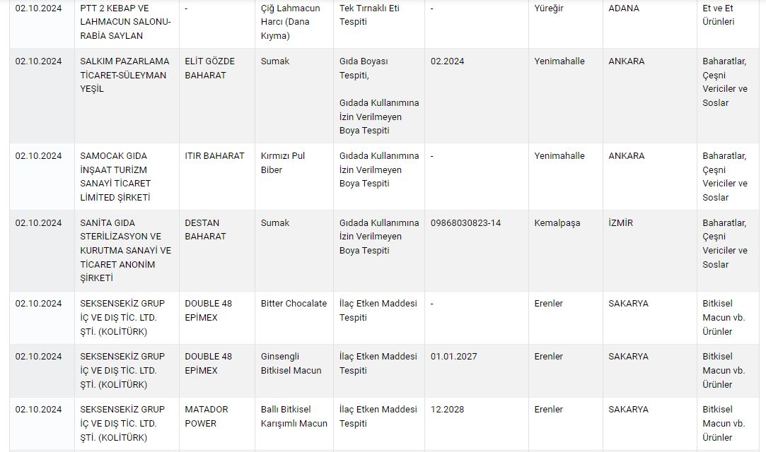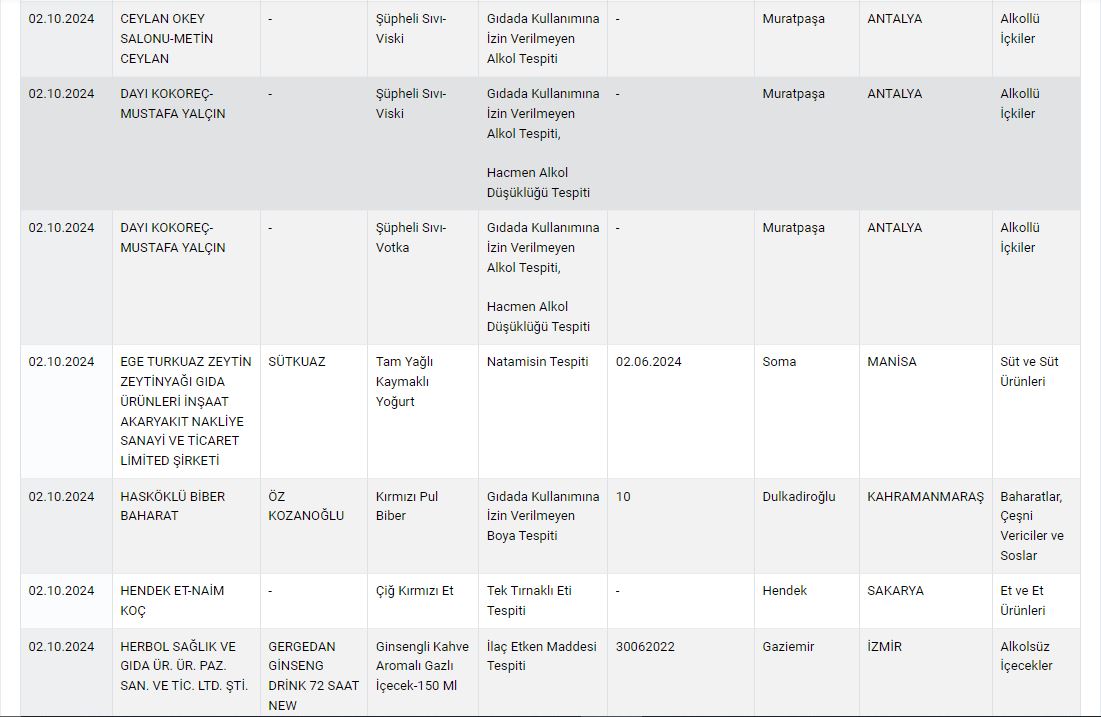 İŞTE BAKANLIĞIN ZEHİR SAÇAN ÜRÜNLER LİSTESİ